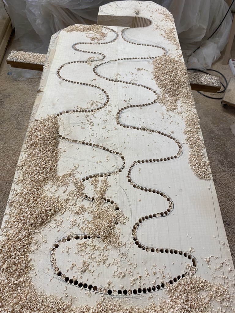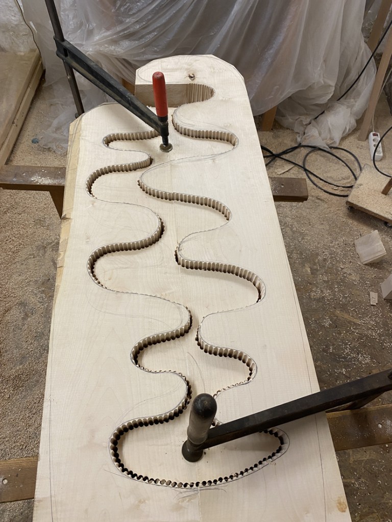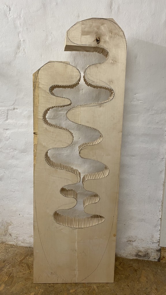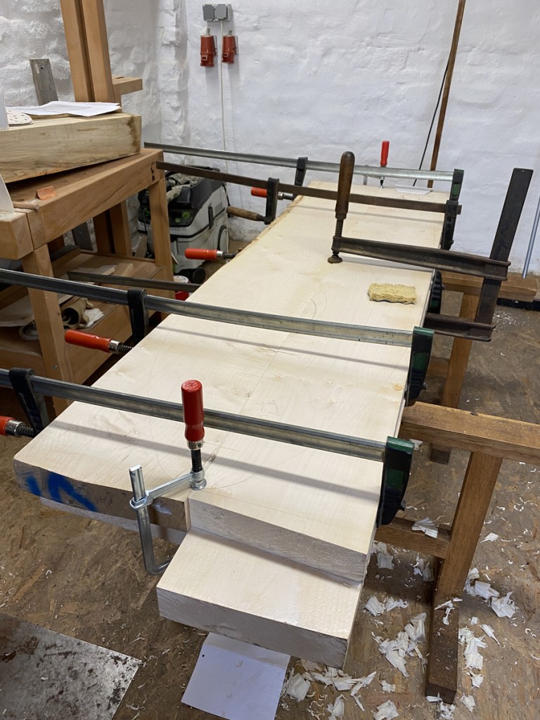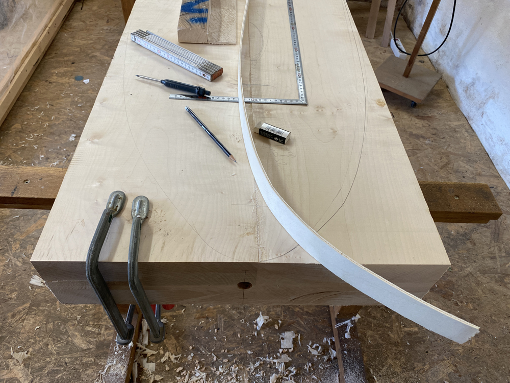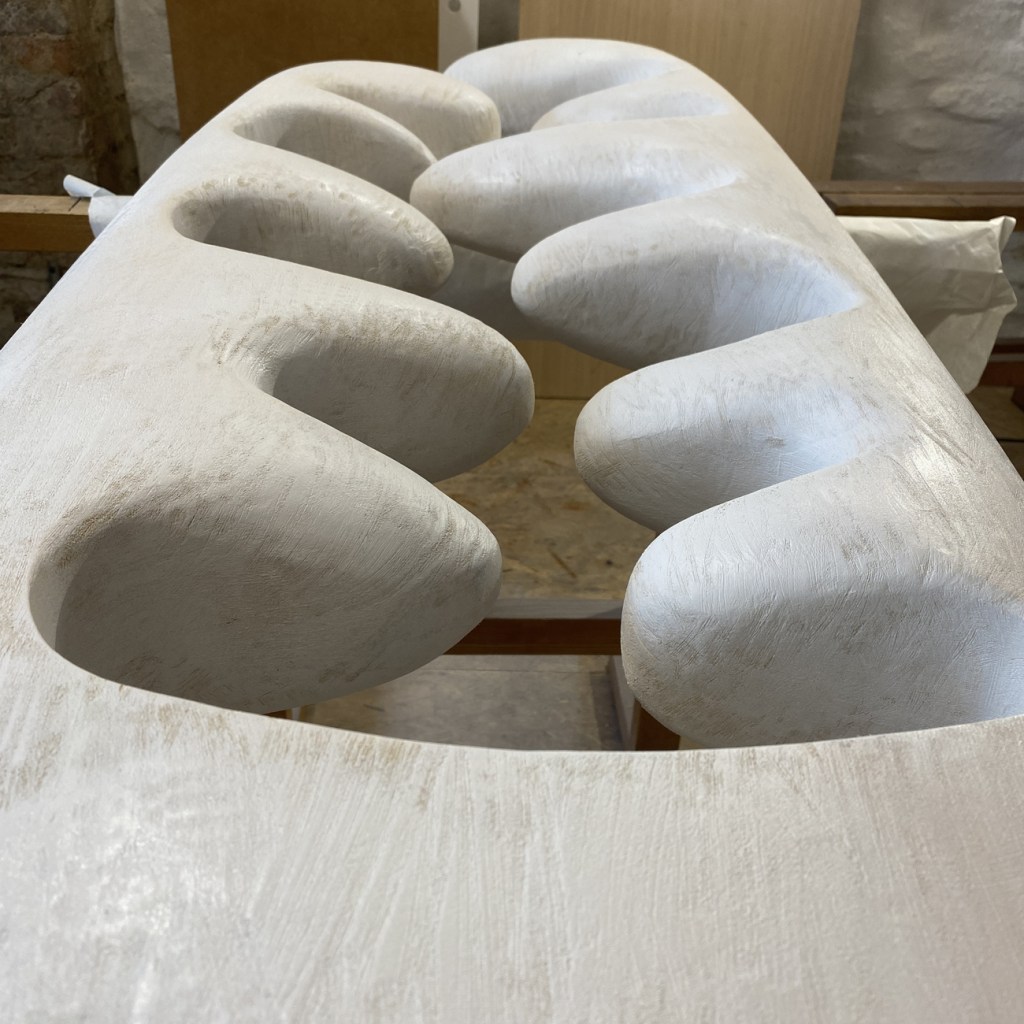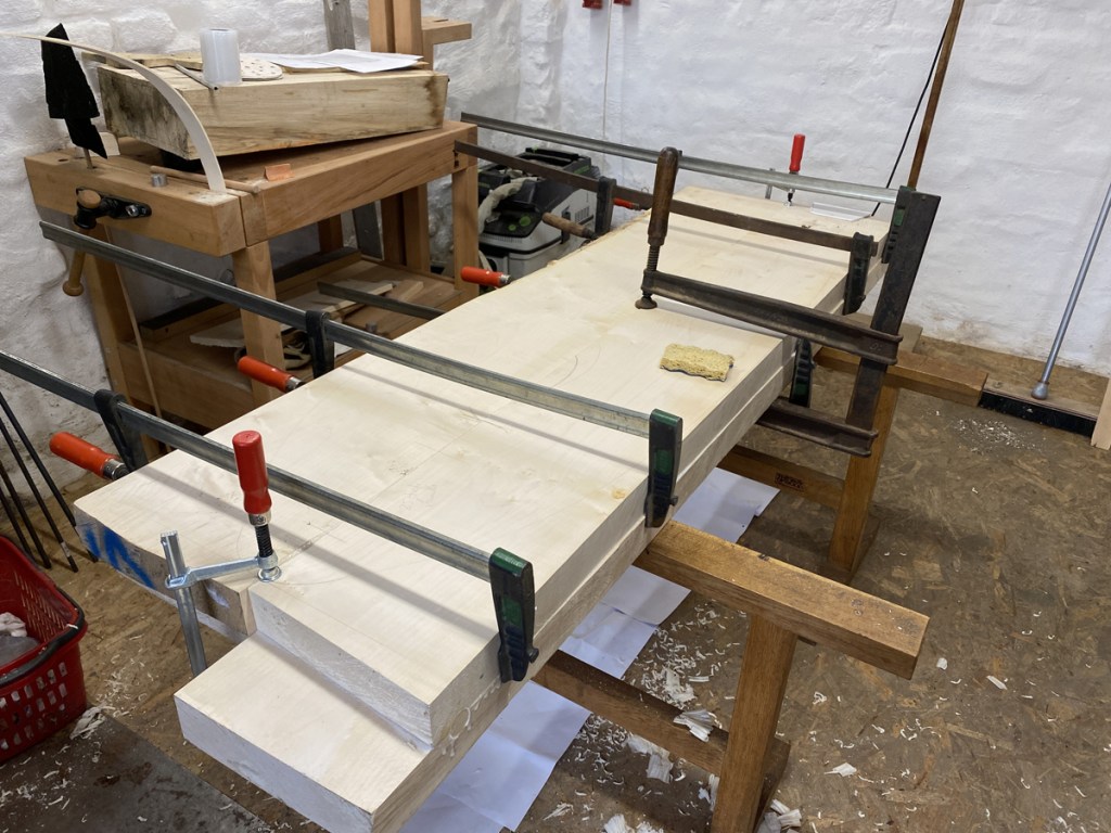 After more than 3 months of work, the first sculpture of this year is almost finished. This time I didn’t make the sculpture from a whole trunk, but instead planed out maple wood and glued it, as glued wood doesn’t warp as much. As the sculpture was to be painted white, I chose the light-colored maple wood for this reason. The photos of the finished sculpture will be published shortly.